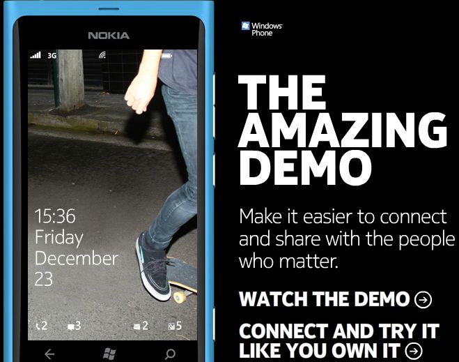 Yes its true. you can demo a Nokia Lumia (both 800 & 710) like you own it. Nokia's official Facebook page is letting you demo a Nokia Lumia. The app lets you tap around the screen to either watch the demo video or have a realistic trial.